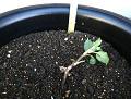 2)鉢植えに培養土を投入し、中央にさし芽苗を植えこみます。