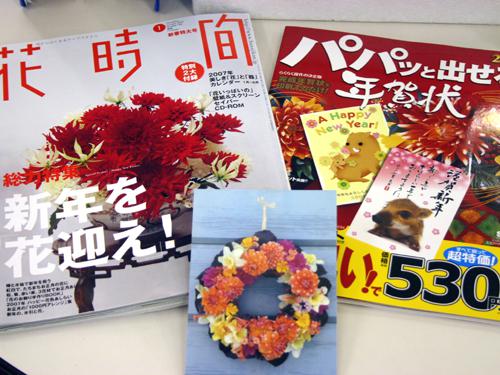『花時間1月号』では、表紙に赤色の「熱唱」「セリーネ」と白色の「アルペンスペンス」で、紅白のおめでたい正月気分を演出している。
