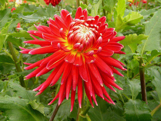 花径:中大輪、花型:ノベルティ(NOV)、花色:緋赤底黄弁裏白、草丈:高性(120p以上)、作出:太田興次郎氏(秋田県角館市)