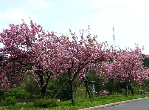 川西ダリヤ園のヤエザクラが満開になりました。
