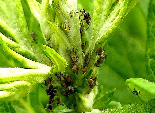 (写真は、今朝撮影したよもぎに群がるアブラムシ)