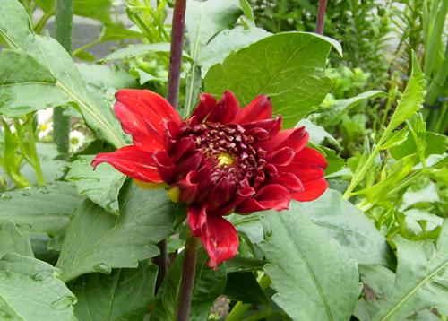 生育の早いもので草丈60cm程になりましたが、毎日1.5cmくらい伸びている計算になります。特に入梅期の伸びが著しく、ダリアはつくづく生長の早い(旺盛な)花と驚かせられます。