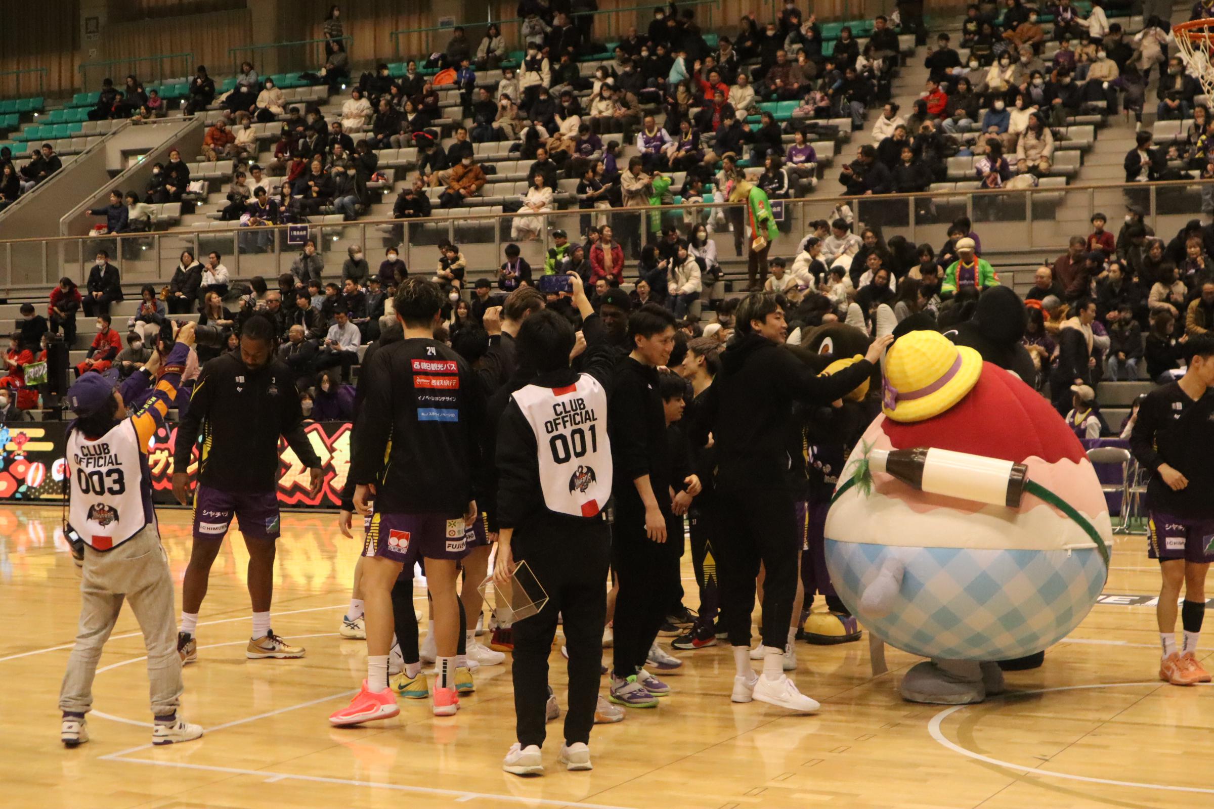 1月24日・25日は「山辺町応援デー」、B2リーグ 山形ワイヴァンズ 対 岩手ビッグブルズの試合があり、すだまりんちゃんも皆さんと一緒に声援を送ったまりん!