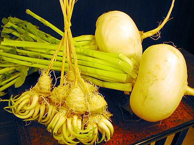 「白ひげ」…あさつきのこと。根をひげに見立てて、ひげが白くなるまで長生きできますように、という願いがこめられている。