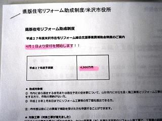 平成27年度の米沢市住宅リフォーム補助金制度が4月1日より開始