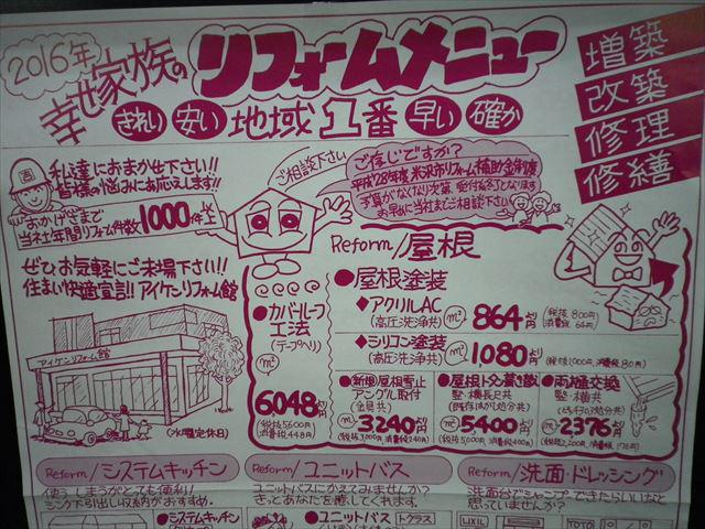 リフォームメニューと題し、さまざまな工事の際の金額を掲載しております。