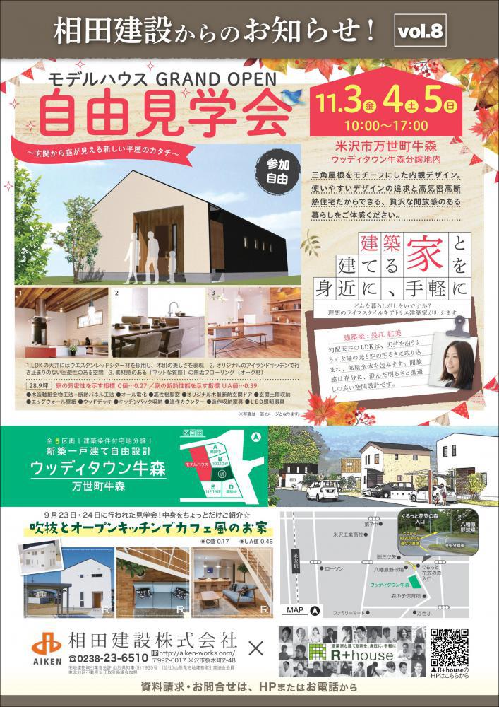▼【グランドオープン】11月3日〜5日モデルハウス自由見学会