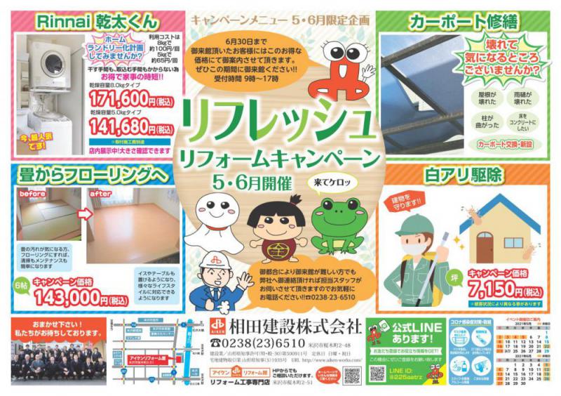 このたび5月・6月のリフォームのキャンペーンを開催致します。