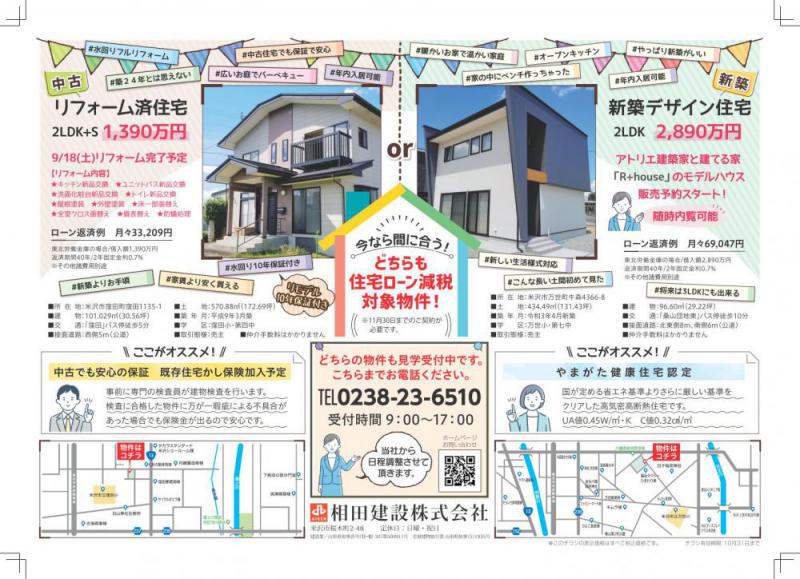 ▼【不動産】リフォーム済中古住宅・新築建売物件のご案内