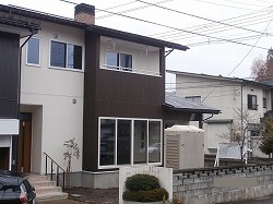屋根の形状を切妻の変更工事を行いました。 また南側の屋根には雪止めを付けず 自然落雪をするようにしました。