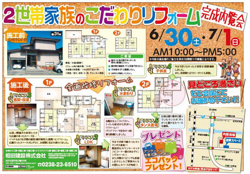 ▼2世帯家族のこだわりリフォーム完成内覧会のお知らせ