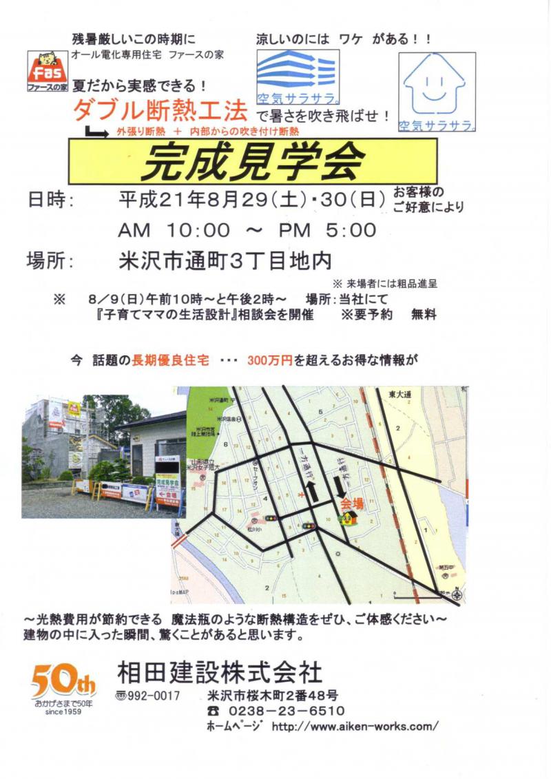 来る8/29(土)と30(日)の2日間、弊社イチオシのファース工法を採用した住宅の完成見学会を行います。