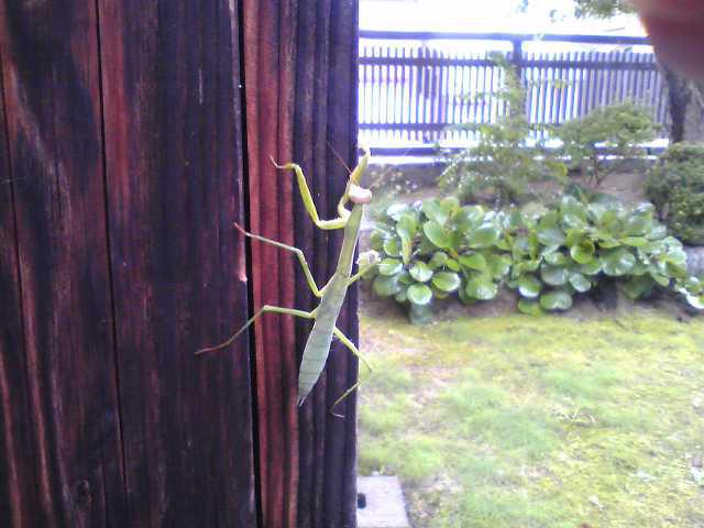 今朝、出掛けるために車庫に行ったら、カマキリが見送ってくれた。