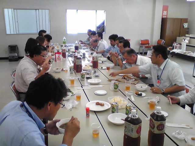 食事前に社内の照明器具の掃除を皆で行い、その後芋煮会で昼食を皆でしたわけです。