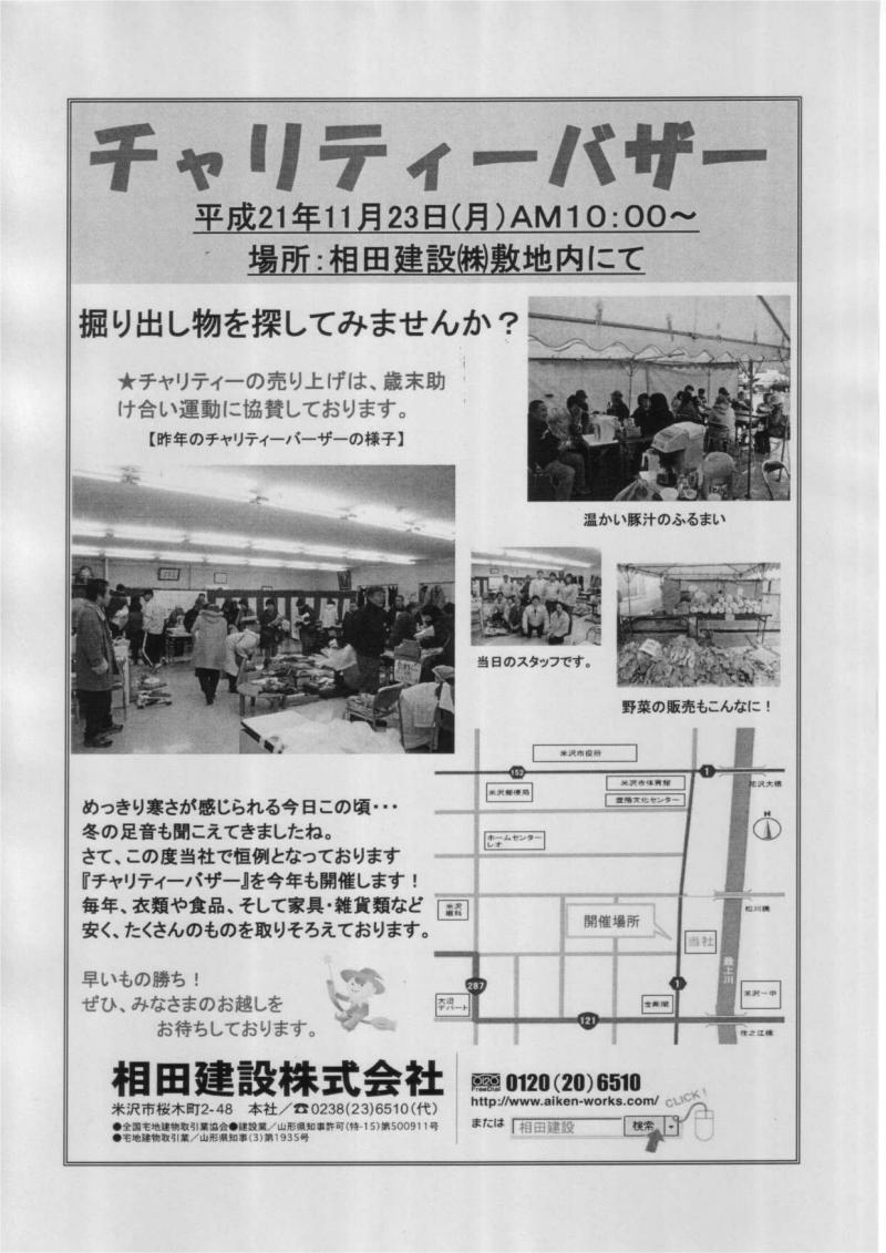 来る11/23(月)勤労感謝の日ですが、弊社恒例となりました「チャリティーバザー」を開催いたします。日夜、弊社スタッフが品物集めや設営準備などにいそしんでおります。