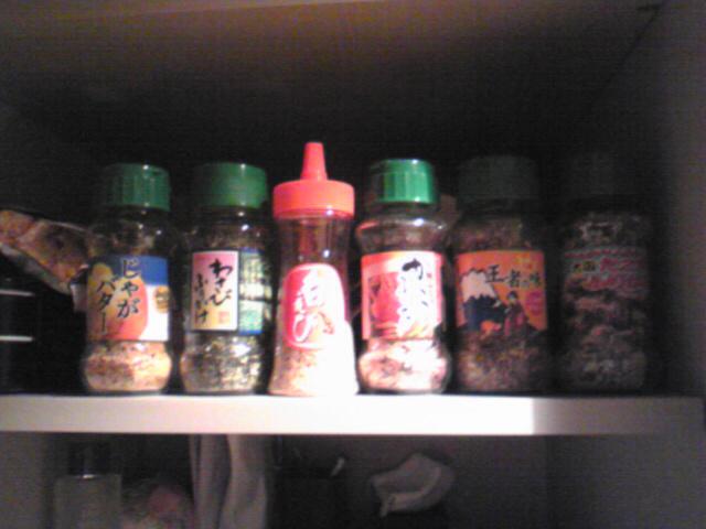 結局自分が食べることになるのですが、バラバラにしまっておいたふりかけが過日、カミサンがワタクシのクローゼットにこれ見よがしに並べたのでした。