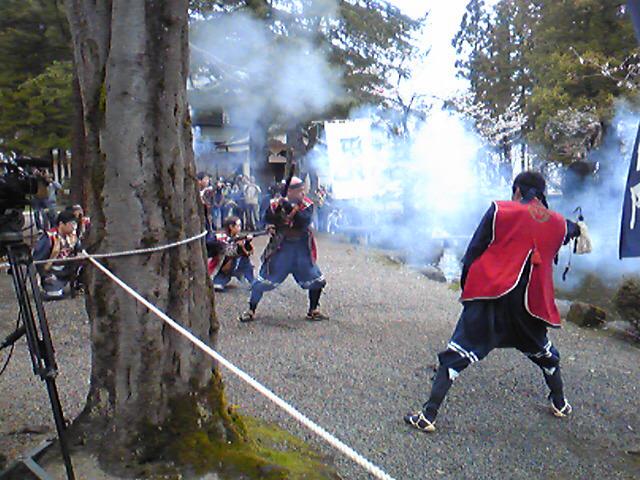 本日は上杉神社の春季例大祭。上杉砲術隊も火縄銃を放っています。こんなに近くで見るのは久しぶりなので写真を撮ってみました。