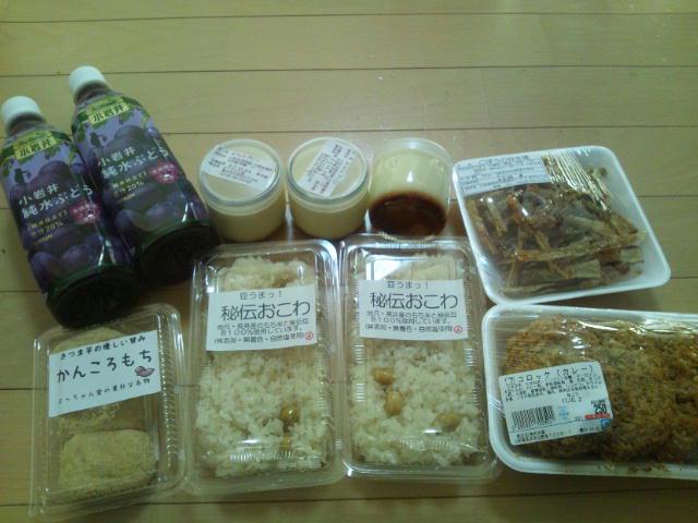 よっちゃん堂さんの秘伝おこわやかんころもち、手づくりプリン。