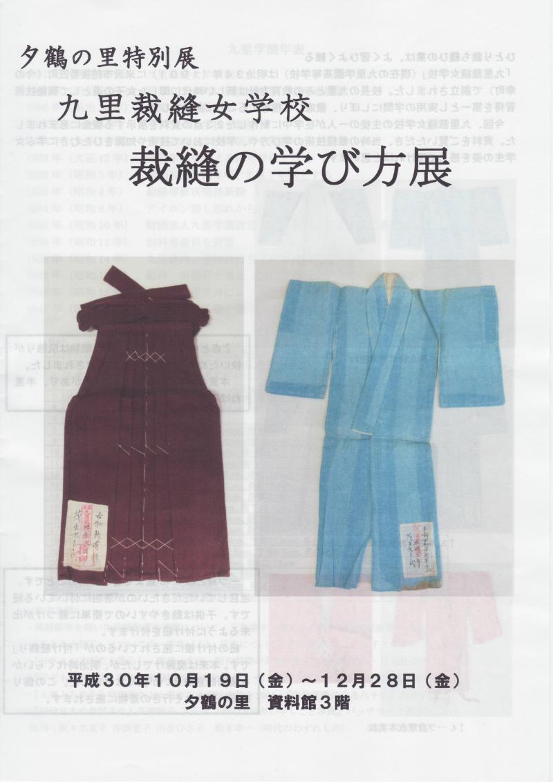 大正5年本科卒業の茂出木 もゝ代さんが九里裁縫女学校で学んだ時の「本科及び速成科過程細目」や「裁縫雛形」が展示されていました。