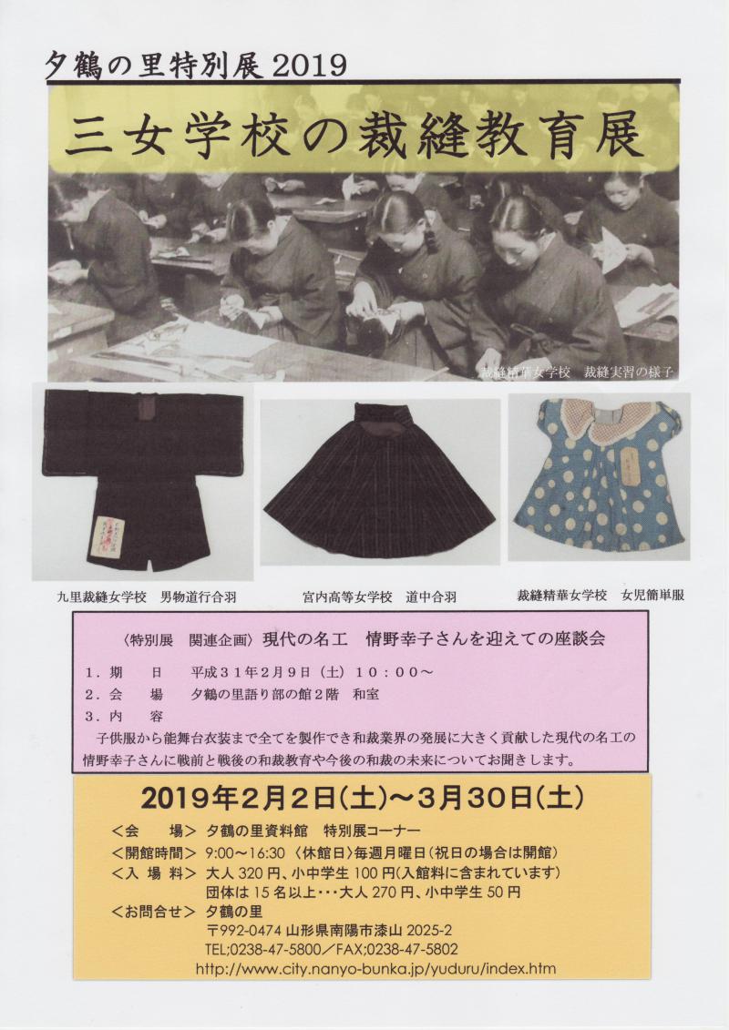南陽市「夕鶴の里」にて『三女学校の裁縫教育展』が下記の日程で開催されます。