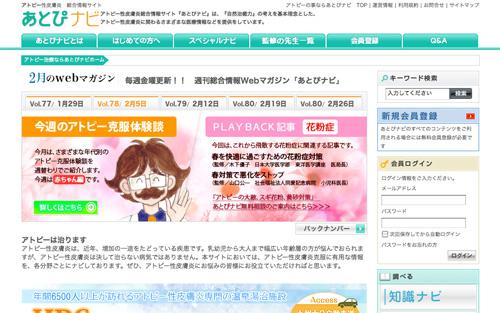 アトピー性皮膚炎総合情報サイト『あとぴナビ』は、『自然治癒力』の考えを基本理念とした、アトピー性皮膚炎に関わるさまざまな医療情報などを提供をしています。