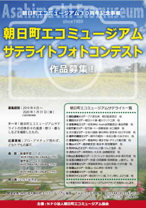 朝日町エコミュージアム30周年記念事業として、フォトコンテストを開催いたします。皆様からのたくさんのご応募お待ちしております! 朝日町エコミュージアムサテライトフォトコンテスト ■募集期間:平成31年4月 〜令和2年1月31日(金) ※当日消印有効 ■テーマ:朝日町エコミュージアムサテライトの四季折々の風景・祭り・暮らしなどを撮影したもの。 ■応募資格:プロ・アマチュア問わず、どなたでも応募可。 ■表彰: 最優秀賞 1点(朝日町の特産品が買える商品券 3万円分) 優秀賞 2点(朝日町の特産品が買える商品券 1万円分) 入 選 10点(朝日町の特産品が買える商品券 3千円分) ■発 表: 2月下旬予定 ■問合せ先: NPO法人朝日町エコミュージアム協会フォトコンテスト係 TEL・FAX 0237-67-2128 ※9:00〜17:00 月・木曜休み 詳しいチラシは上記↑ダウンロードボタンよりpdfファイルを開いてご覧ください。 |