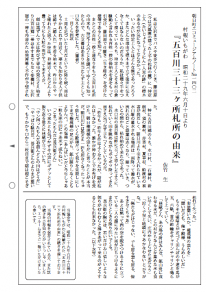 上記村報「いもがわ」昭和29年6月発行の号から、「五百川三十三ヶ所札所の由来」と題して三十三観音の由来が物語のようにシリーズで紹介されていますが、残念ながらこの号しか見つかっていません。このあとの号をお持ちの方はぜひ拝見させて下さい。
