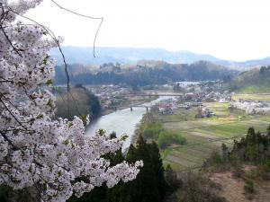 いくつもの中州、白波のたつ激流、色とりどりのカヌー、りんご園そして遠くに旧明鏡橋や桜公園の美しい風景を見ることができます。「最上川ビューポイント」は 、山形県が「母なる川・最上川」への関心と愛着を深めることを目的として、最上川の良好な眺めを得られる地点を公募し、寄せられた258件129ポイントの中から11景を選定したものです。
