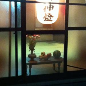 風神祭の御供え物は、縁側に小机置いて、赤飯と季節の物を上げる。たとえばスイカとか夕顔とかブドウとかのあるものだね。それからローソクも立てて、上には提灯を下げる。そして、神輿の神様が来てけるように、その御供えの前まで道路からの盛り砂をつなげるんだ。 御供え物は、どの家でもしていると思ったら、今はそうでもないなだね。 (取材/平成26年3月) →大谷の風神祭 →小径第15集『大谷風神祭』 |