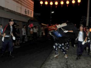 第1区 立小路 区長 兼子 正昭さん ◆テーマ 現代物というか、その年の流行りものを基本にしてやってきたね。「バカ殿」から始まって、「ちびまる子ちゃん」「サザエさん」「ドラえもん」「アンパンマン」と、最初は人気アニメをやっていた。被り物はビーチボールに紙を何枚も貼って手作りしていたんだ。 そして、「マツケンサンバ」や「AKB48」「ゴールデンボンバー」「きゃりーぱみゅぱみゅ」と、仮装とダンスにこだわってやるようになった。 ◆演じている人は 青年部の「立青会」を中心にやっている。 ◆見どころ・楽しみ方 派手なパフォーマンス、最新のダンシング、自我を忘れるメイキングだな。特に女装にはずいぶん力入れったっけね。お客さんが手拍子したりして盛り上げてくれると、演じるほうも益々調子に乗れるようだ。それからダンスは、見ている人もその場で一緒に踊れるようなものを選んでいるので、だんだん踊り手は増えてくる。参加型になっているので、ぜひ一緒に踊って欲しいね。 ◆エピソード やっぱり、平成元年に初めて屋台を出した時の「バカ殿」だな。当時テレビで爆発的な視聴率だったから大ウケしたんだ。トラックの屋台に白塗りした二人のバカ殿を乗せて、演じる場所では、志村けんのステップみたいなのを軽く踊っていたっけ。パンダやウサギの着ぐるみも借りてきて一緒に歩いたから、子供たちの人気の的だった。流行ものをすることやメイクは、あの時から始まっていたんだな。 演じたあとに、小さなお菓子をあげる「じゃんけん大会」は、毎回子供がいっぱい押し寄せて大変盛り上がったね。時間なくなって「あと終わり」って断らんなねほどだったな。 →参考動画 第2区 田中 区長 白田 孝さん ◆テーマ 初めは田楽提灯をトラックにたくさん載せて何年かまわっていたけど、峯壇あたりが趣向こらしはじめたので、田中もなにかさんなねべとなった。 一番最初は「極道の妻たち」をして、山形新聞にも載ったけど、子供達によくないかも知れない(笑)ということで、テレビでしていた日本昔話がいいんねがとなった。それから「桃太郎」「浦島太郎」「孫悟空」「花咲か爺さん」等を20数年やっている。 ◆演じている人は 「二和会」の若い人達でやっている。 ◆見どころ・楽しみ方 内容が原作とは少し違う展開になっている。自分達も見ている人も面白くなることを心がけているので楽しみに見て欲しい。 衣装も大道具も凝っている。衣装は、ももひきを染めたりして、それぞれ自分たちで作ってくる。花咲か爺さんが花咲かせる時は、クリスマスの電飾が一瞬で点くようなしくみを作った。本番は、1回目の旧田中屋さん前はまだ緊張していて演技が硬いから、2回目の松谷屋前あたりの公演からが一番面白いと思う。 ◆エピソード 脚本は書かないけれど、練習しているうちに、最後の3日間位でストーリーがだんだんエスカレートして、原作とは違うアレンジになっていくんだ。 初めの頃に孫悟空の猪八戒をした時、恥ずかしいので、誰だがわかんねように、顔じゅう色を塗ったら子供に泣かれた。 青年部の「二和会」は、二区の「二」と、当時暴力団抗争で有名だった「一和会」をもじって付けた。ちょうどその頃に屋台出すことになって「極道の妻」をしたんだな。 去年は大雨降って、早いうちにアンプがショートして音が出なくなって、酷かったね。 →参考動画 第3区 高木 区長 志藤 彰さん ◆テーマ 「こども神楽」と「風神太鼓」で、台風などの風水害を追い払い、五穀豊穣と家内安全を祈願し、大谷の風神祭に多くの見物客が来てもらえるようにと頑張っている。 ◆演じている人は どちらも、小学4〜6年生が中心になるが、子供が少ない年は小学3年生や中学生まで応援してもらうこともある。 ◆見どころ・楽しみ〕 子ども神楽は、大人顔負けの暴れ神楽。見物客や店に突っ込んで行ったりして、時々、神楽の耳が落ちたり顎が外れたりすることもあって「終わるまで怪我がなければいいな…」と心配になる。 風神太鼓は、少し化粧して色気を見せながら叩くんだけど、本番になると練習の時とは別人のように、風神祭にふさわしい台風を追い払う、迫力満点のばちさばきになるんだ。 ◆エピソード 今から30年ほど前に、大人が代々神楽を練習していた時、それを見ていた小学3年生の子供が、段ボールで神楽の頭を作って、唐草模様の風呂敷をかぶって真似して踊っていた。風祭りの反省会で「来年子供神楽やってみんべ、風祭り盛り上がるぜ」と話がまとまり、翌年から始まった。一時、子供が少なくなった時は大人が演じたことがあった。当番で回ってきた代々神楽と「親子神楽」を演じたこともあったね。 また、当時、女の子も多かったので「お祭りには太鼓が似合うべ」ということになり、2年ほど遅れて「風神太鼓」がはじまった。最初は「大沼の浮島太鼓」の楽譜の一部を借りて叩いていたんだけれど、その後、風神太鼓にふさわしい楽譜を作っ