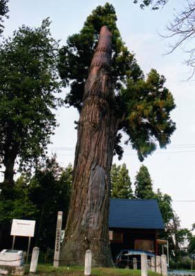 根周り11m、目通り幹囲7.5m。平安時代の承和11年(844)延暦寺の僧安慧によって豊龍神社創建時にご神木として植えられたと言い伝わっています。落雷や風雪により頂部や大枝を失くし樹勢を損なっていましたが、樹木医により適切な処置が施されました。山形県指定天然記念物(1965年4月指定)。