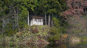 鴻の森に囲まれた沼べりにひっそりと立つお社は、小松家により建立された熊野神社です。「八ッ沼七名勝」の一つ。