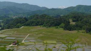 面積はおよそ14ha。およそ190枚の水田を有します。東側には最上川の悠々とした流れが、眼下100mに見られ、北川にはひめさゆりの群生地で知られる一本松公園があります。また、最上川の五百川橋や周辺の山々、能中集落との調和のとれた風景は日本の農村の原風景そのものです。 水は、八ッ沼の西側奥を流れる油子沢から取水し、トンネル2本と水路により、いったん春日沼に水をため、そこから椹平まで隧道で水を通し水田にしました。現在は水量の安定を図るため、最上川からも取水しております。 椹平は戦後までは田畑でした。当時の日本は食糧難で、国は食料増産を国策としておりました。そんな中、昭和16年椹平と元能中の畑地を開墾する計画が起こり、三中地区土地改良区をつくり開田工事に入りました。現在のような建設機械はないため工事は大変でした。また、当時の国策で大変なことなので、小学生も工事を手伝いました。 (記/宮本建一) →棚田の玄米菓子 →棚田とヒメサユリ見学会(PC) →夏草三中堰と棚田見学会(PC) →アクセスマップはこちら |
