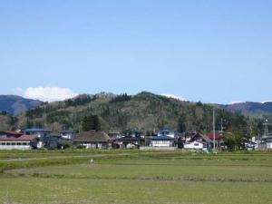 大谷集落の南西方向に標高247.5mの真木山があります。大江、伊達、最上の三勢力が争う戦国時代、ここは真木山城とよばれた城であり、東方にある秋葉山楯、北東の位置にある猿田楯とともに敵からの攻撃に備えました。