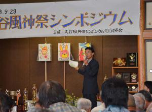 「大谷風神祭のこれからを考える」 バネラー 菊池和博氏(東北文教短期大学教授) 白井淑浩氏(大谷風まつり実行委員会) 堀敬太郎氏(風和会) 白田敏男氏(大谷角田流獅子踊り保存会) コーディネーター 長岡信悦(NPO法人朝日町エコミュージアム協会) ■長岡 ただいまからパネルディスカッションを始めさせていただきます。パネリストの方からご意見いただきますが、ぜひ地域のみなさんからもお考えなどを聞ければと思っております。 ■白井 今年の大谷風神祭も、地区のみなさんから大変なご奉仕をいただき例年通り行うことができました。心から御礼を申し上げます。 ただ、長い間、祭礼の時だけは雨に降られたことがなかったのでありますが、今年は、どういうことか大変強い雨が降ってしまいました。途中で区長が集まり相談をしたところ、子供の田楽提灯以外はとにかく続行するべ、となりました。花火も四十一発打ちそびれましたので、来年の風祭りに多く上げるようにいたします。 さて、私が実行委員長になって七年目になりますが、今年も実行委員会は七月の中旬に一回しただけです。安全協会さん、消防団さん、商工会さん、そして氏子会の皆さんなどで、今年は三十八名に集まっていただきました。その後は、それぞれの皆さんが分担通りにしてくださり風祭りは行われます。そして、祭りの後にもう一度集まって決算報告をご承認いただいて、一杯飲んで終わりとなります。これは長い歴史と伝統の中での大谷地区の連帯感や責任感などの賜物でないかなと思っています。 ■堀 風神祭に関しては、明治二十二年に北部地区が合併し大谷村になった折りに発行した『大谷村史』に載っています。 神輿巡行ですが、順路は今まで大きく三回変わっています。もともと神輿は、現在の白山神社あたりにあった「天満宮」に保管していたものでした。この天満宮はおよそ二千五百坪の境内を有し、素晴らしい格式と歴史のある神社だったのです。そこから高木地区の若衆が担いで、永林寺の門、立小路を下って、横小路に行って、小学校跡にあった白山神社で宮司の小野さんが出迎え、行列が整い、そこから出発するという具合になっていたようです。 その天満宮が、明治維新五年前の文久三年三月三十日に全焼した時からは、白山神社にその御神体や御神輿を収め、そこから出発したと書かれてあります。 終戦後、白山神社に対してGHQ(進駐軍)から「学校の側に神社があるとはとんでもない。早く移転しろ」という命令がありました。私は、これは反対だと思うんですね。千何百年、白山神社はそこにあったわけで、あとから明治になって小学校がその隣にきたので、小学校を移転すろと言いたいところでした。 昭和二十一年の五月に、今でいう村民大会を開き移転先を話し合いましたが、まとまらず、とりあえず解体だけし、昭和二十五年十月に現在地に移転しました。そして、翌年からは現在のような巡行順路になったようです。 行列については「白山神社の別当が先導して天満神社の神官白田外記以下、神官保利内匠、同白田惣吉郎他、村役一同これに従って、前後左右を各戸から出た高張提灯で囲み巡行する」と書いてあります。ただ、各戸で高張提灯(たかはりちょうちん)というのは間違いだと思います。風祭りは農民の祭りであるということから言っても、高張提灯を各戸で持つ余裕があったのかなと思うのです。実際は、庶民的な、自分で作り、書くこともできる田楽提灯だったと思われます。 それから、神楽獅子については「前に加わり(後(のち)のことなり)」と書かれてありますが、代々神楽は昭和三年頃に東地区の青壮年の方たちが、宮宿の豊龍神社の大獅子を習いに行って、それを大谷の風祭り、夜祭りに合うようにアレンジして作ったんだと、以前に白田常松さんから聞いております。ですからこの文書はいつ書いたのか少し疑問は残りますが、大体間違いないんじゃないかと思っています。 そしてとにかく、昔から近郷近在より参詣人がすこぶる多く、露店もすこぶる繁盛したというふうに書いてあります。昔から露店が来ていますが、やはり儲かるから来ていたのではないでしょうか。花火を打ち上げて祭りをよりいっそう彩るということも書いてあります。 ■白田 昭和四十七年に、師匠の先輩方から教えてもらって四十年になります。始まりは、第四区の若者たち「チョンガー会」の芋煮会の時のこと。獅子踊りの道具が北部公民館の押し入れに入っていると聞き、「我々で復活させよう」と盛り上がったのでした。そして、その勢いで連合区長だった鈴木幸次郎さん宅を訪ねてお願いしたのですが、「飲んだ勢いで出た話では引き受けられない。出直して来い」と断られました。そして、もう一度集まってみんなの気持ちを確かめてから、改めてお願いに行きました。「ほんとにいいのか」と何回も電話ももらい、やっと「分かった」と言ってもらいました。二十四歳くらいの若者達のこ