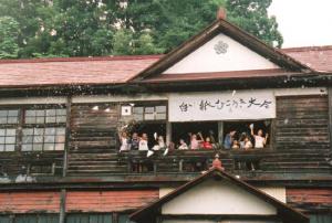 平成11年(1999)春、朝日町立大谷小学校大暮山分校は、児童数減少に伴い閉校しました。同時に、一世紀の歴史を持つ校舎も取り壊しの予定でした。惜しまれる声も聞かれる中、地元朝日町の若者たち「おもしろ塾」が、なくなるまえに思いで作りをしようと、試行錯誤の中、第一回の白い紙ひこうき大会を計画しました。それは、ただの競技会ではなく、あったかくて懐かしい夏のワンシーンをみんなで作るような、そんな大会をめざすことになりました。