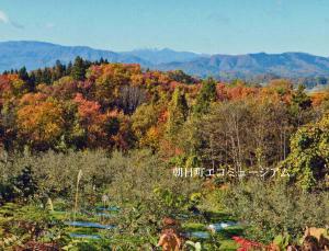 古槇から和合平にぬける県道そばに、地区で整備したりんご公園があります。園内には東屋も整備されており、雄大な大朝日岳を見ることができます。