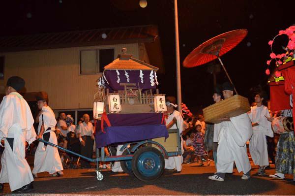 白山神社では、そのあと町の中にご利益が行くように町の中を練り歩く「神輿渡御(みこしとぎょ)」を行っている。神様が町内を回る事を神幸(みゆき)と呼ぶ。