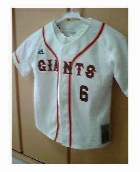 憧れのユニフォーム、おじいちゃんの野球観戦時のお土産です。今年のユニフォームはアディダス製値段は1万数千円だとか うーん自分も欲しい。