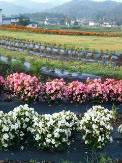手前はベコニア、それから、マリーゴールド、上の