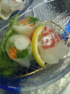 鯛、 海老、京水菜、人参、じゃが芋、胡瓜