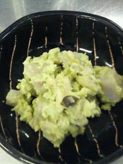 里芋を煮て 小さくきります.毛豆をすりつぶし