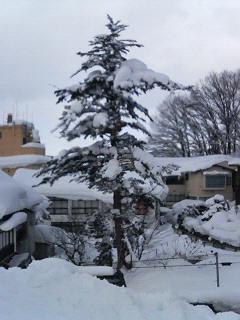 扇屋さんの庭に立つこめつが。