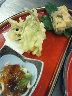 真ん中にあさずきの天ぷら、奥は、千草焼きです.