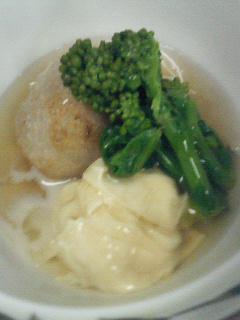 湯葉とつけあわせ、旬の菜の花を添えます。