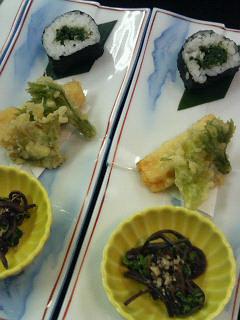 蕗の薹、こしあぶらの天ぷら。タケノコのはさみ揚げ。