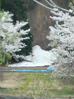 満開の桜と残雪のコントラストで雪見桜が楽しめます。