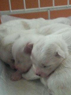 と雌が1匹です。親犬がくるとおっぱいの方によちよち