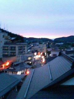 小野川温泉街。今日は鮮やかな夕焼けですね。