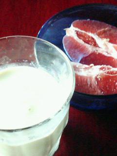 佐藤豆腐屋の濃厚豆乳に牛乳を少し加え飲みます。